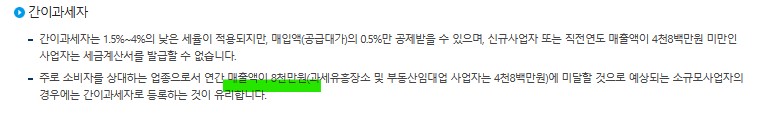 (부동산임대업 및 유흥업은 연간매출액이 4,800만 원 미만일 경우 간이과세자로 등록이 가능합니다.)