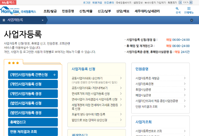 개인이 사업을 시작하려면 우선 세무서에 사업자등록을 하고 은행에서 사업자용 통장도 만드시고 홈택스 가입도 하고 사업자로서 세팅이 필요합니다. 사업자등록은 과세사업자(일반과세자, 간이과세자) 면세사업자로 선택하여 사업자등록을 합니다. 1년 동안 과세 사업 매출액이 8,000만 원 미만을 예상한다면 간이 과세자로 사업자등록을 신청할 수 있습니다. 세무서에 직접 방문하여 신청하거나 공인인증서로 국세청 홈텍스에서 온라인으로 사업자등록 신청을 진행할 수 있습니다.