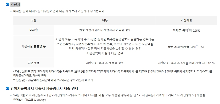 2024년도 귀속분에 대해 간이지급명세서 미제출하고 기타 소득 지급명세서를 제출한 경우에는 가산세 면제