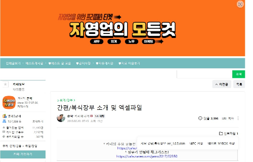 간편장부를 이용해서 복식부기 장부를 만드는 걸 설명하기가 어려워서 검색해 보니 엑셀을 공유하는 카페가 있네요.