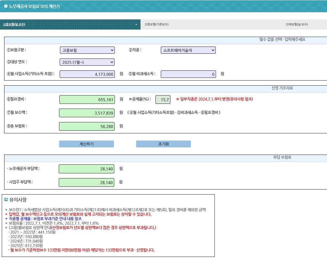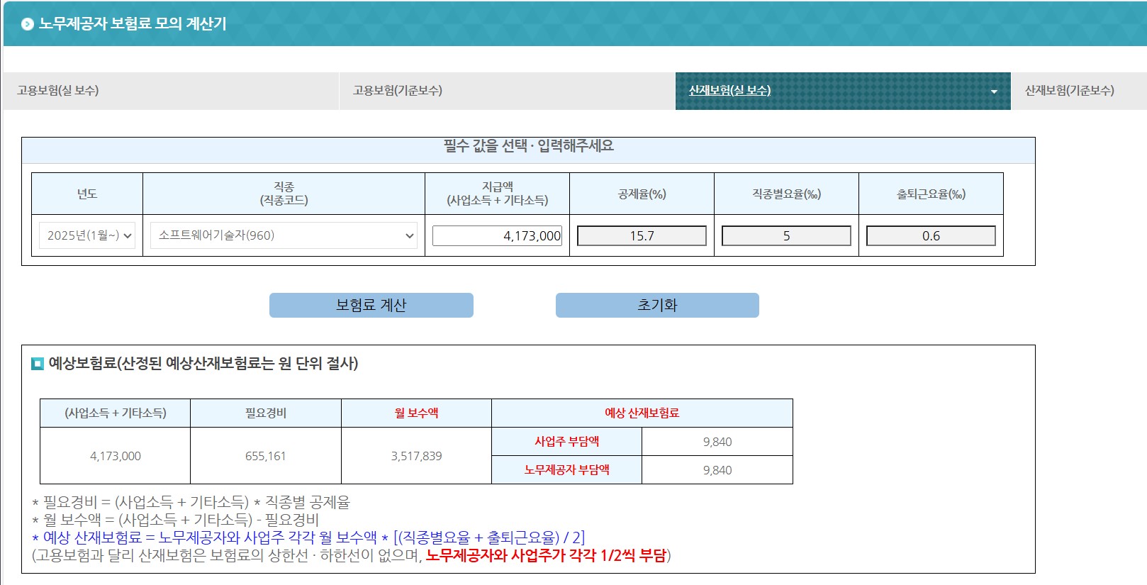 카테고리 없음 노무제공자 보험료 모의 계산기 by taxguide23 2025. 2. 11. 반응형 노무제공자 보험료 모의 계산기(산재보험-실보수) 노무제공자 보험료 모의 계산기(산재보험-실보수) 예상보험료(산정된 예상산재보험료는 원 단위 절사) 2024년 예상보험료 출력 (사업소득 + 기타소득) 필요경비 월 보수액 예상 산재보험료 사업주 부담액 노무제공자 부담액 * 필요경비 = (사업소 www.comwel.or.kr 반응형 공유하기 게시글 관리 비즈니스 가이드 저작자표시 (새창열림) 댓글