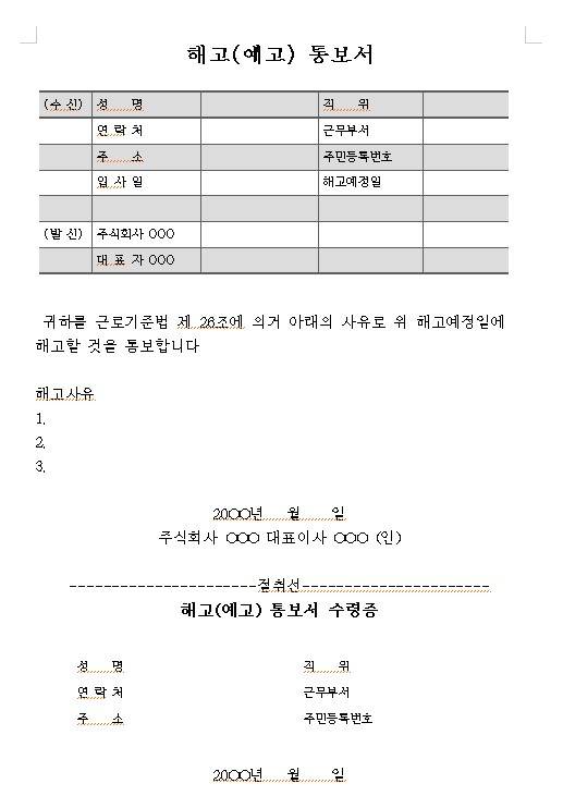 해고통보서는 내용증명으로 근로자 주소지로 송부하고 반송이 된다면 해고 통보서를 사진으로 찍어 이메일등으로 보내야 합니다. (문자, 카카오톡 사진 송부)