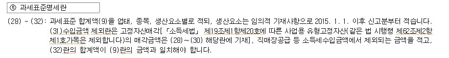 부가가치세 신고서의 과세표준 명세서시 고정자산 매각 매출이 있는 경우 과세표준 명세서 작성 요령입니다.