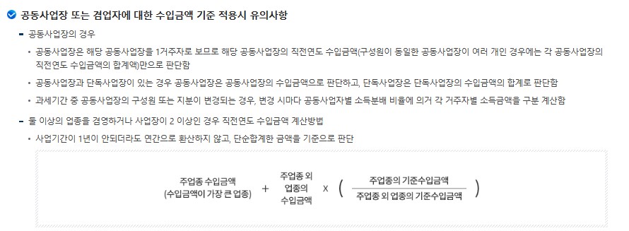 공동사업자 또는 겸업사업자의 수입금액 계산 방법