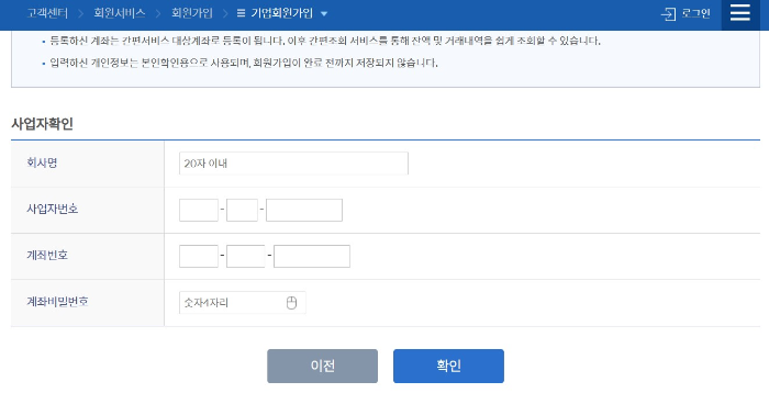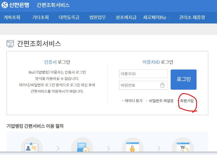 1. 간편 서비스 회원가입하기(상난 내용 참조)-회사에서 진행