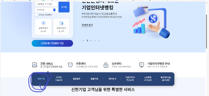 신한은행기업뱅킹 홈페이지에서 아이디와 비밀번호로 거래내역 조회를 할 수 있는 방법입니다.