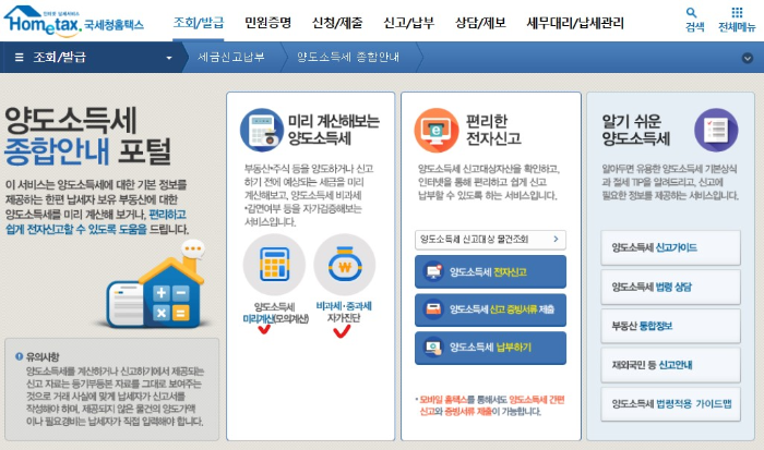 모의계산으로 양도소득세 계산을 할 수 있습니다.