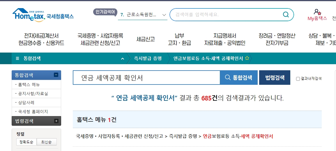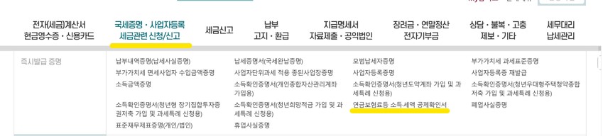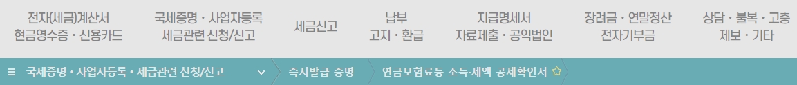 국세청홈텍스 로그인-국세증명-연금보험료등소득세액공제확인서 신청-발급