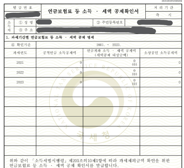 개인연금, 퇴직연금보험 등을 중도해지 시에 기존에 세액공제를 받지 않은 금액이 있다면 은행에 아래 세액공제 확인서를