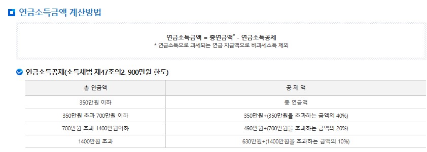 과세대상 연금 소득금액은 소득공제 금액을 제외하고 판단합니다.