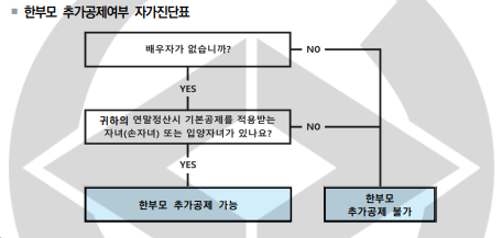 - 한부모 소득공제-배우자가 없는 경우 기본 공제 대상자인 직계비속 또는 입양자가 있는 경우 -100만 원 공제