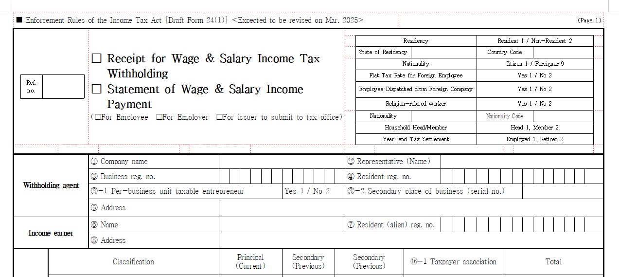 근로소득원천영수증 영문은 서식에 작성하여 교부해야 하네요.