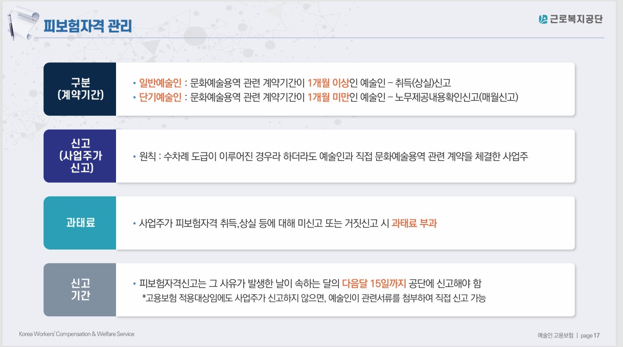 에술인 고용보험료 신고 관련 안내.