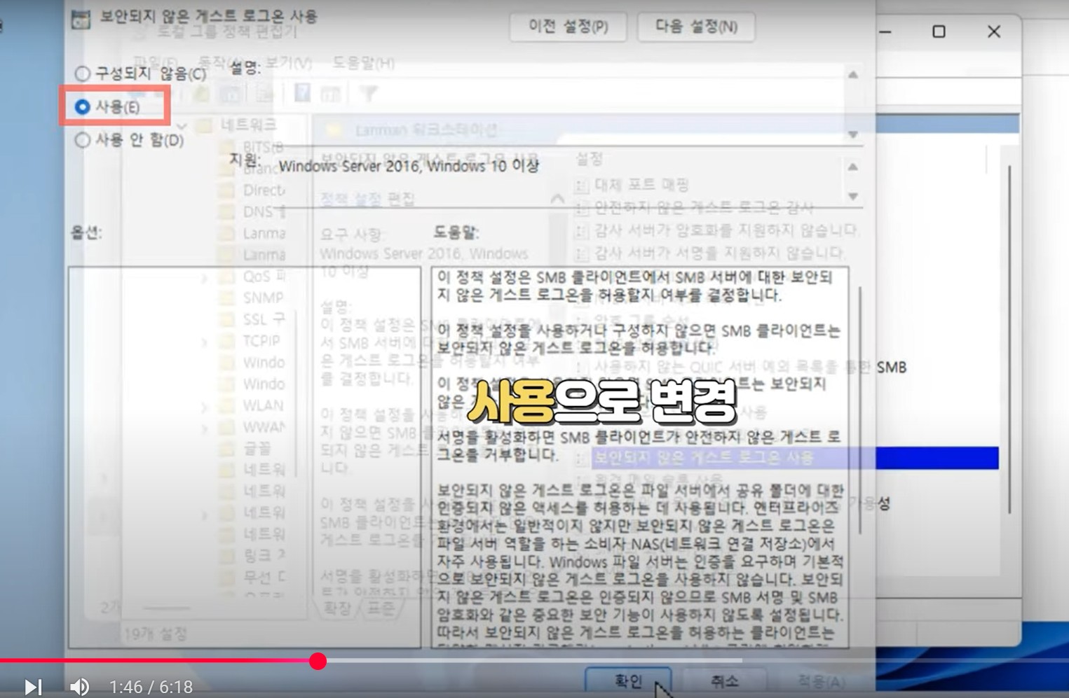 근데 네트워크 공유 폴더에 연결이 안 되네요.ㅠㅠ
