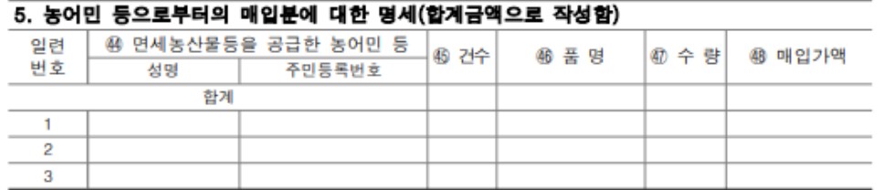 (증비서류는 송금영수증를 보관하시고 농어민 성명, 주민번호, 건수,품명, 수량 매입가액등을 의제매입세액공제 신고서를 작성하여 제출하면 됩니다.)