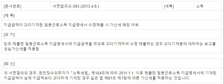 오류발견 10월분 일용직 지급명세서 1명 1백만 원으로 익년 1월 말일 수정신고.