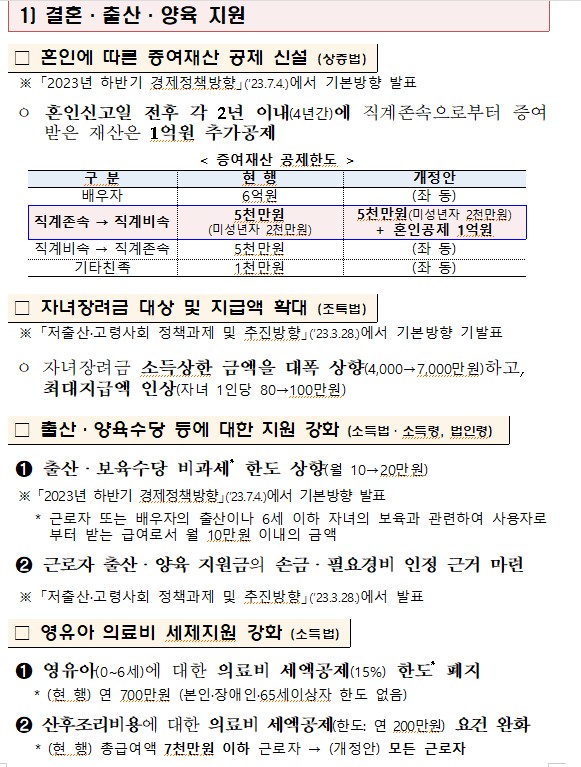 출산ㆍ보육수당 비과세 한도 상향(월 10→20만 원)