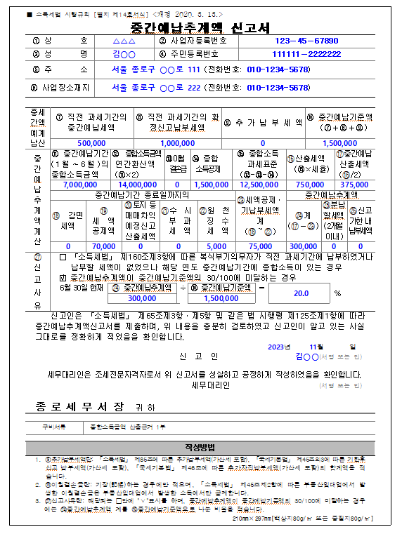 2023년 개인사업자의 종합소득세의 중간예납분(전년도 납부액의 1/2 고지) 납부는