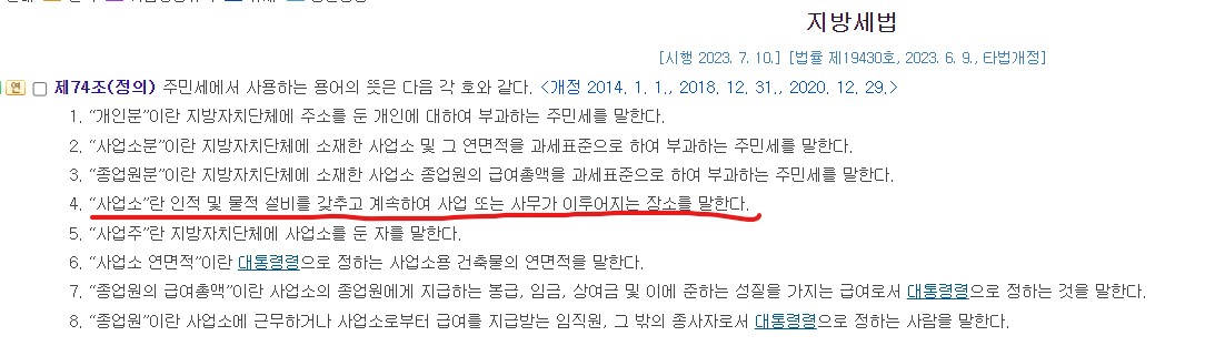 사업소란 인적 및 물적설비를 갖추고 계속하여 사업 또는 사무가 이루어지는 장소를 말한다.
