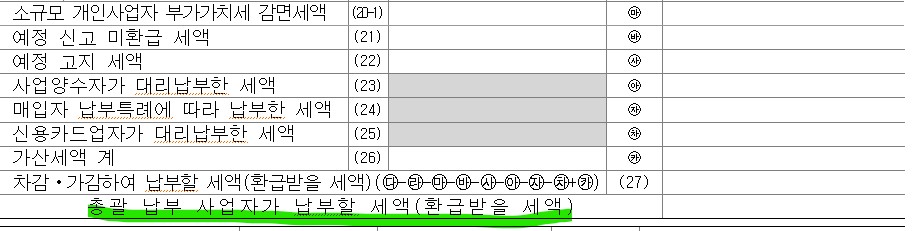 a법인은 신고서 21번 탭 예정신고 미환급세액 0 차가감납부할(환급) 세액(27) -50