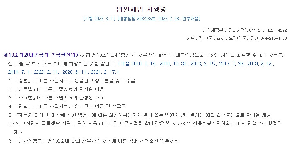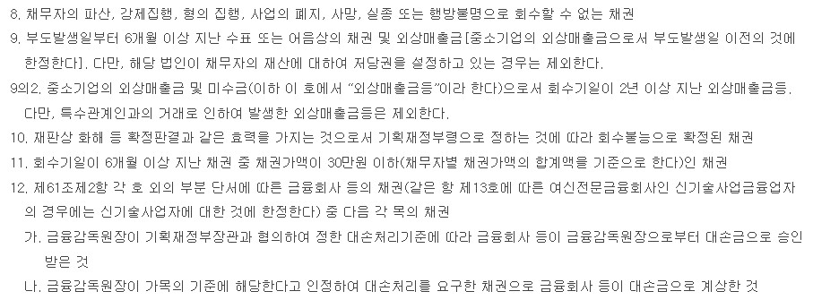 회수기일이 3개월 이상 지난 채권중 채권가액이 30만 원 이하(채무자별 채권가액의 합계약을 기준으로 판단)인 채권도 대손 처리가 가능합니다.