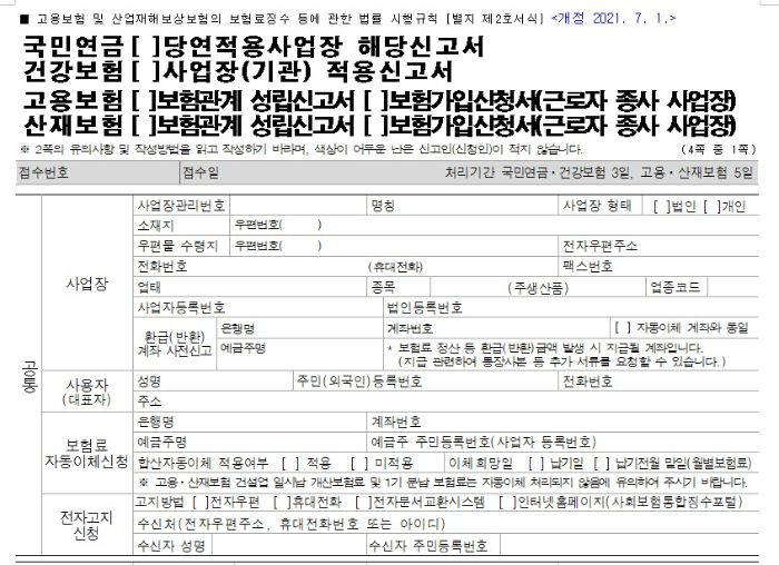 각공단에 팩스 보내지 않고 한 군데만 보내면 연계하여 취득, 상실 신고 처리가 가능합니다.