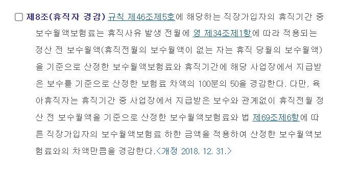 휴직분 건강보험료-50% 경감고지(일반휴직시 감면율 50%)