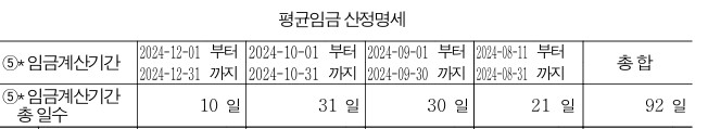 이직확인서 제출 시 예로 12월 휴직보수와 10일 근무 이력이 있는 경우