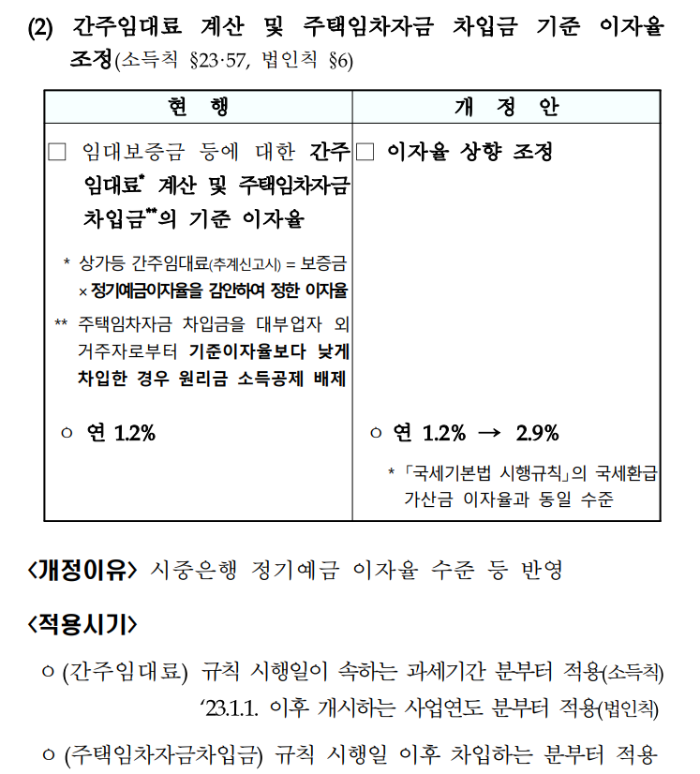 정기예금이자율 상향으로 간주임대료 요율도 인상되었습니다.