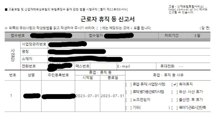 예로 7/1-7/31 육아휴직으로 휴직하고