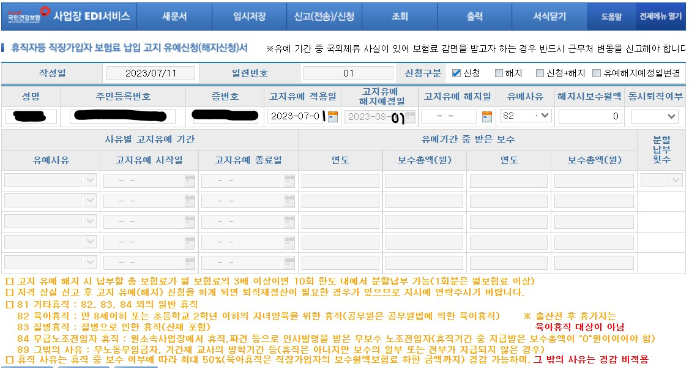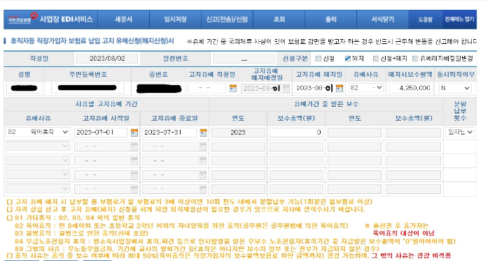 [건강보험 EDI] 건강보험 휴직신고 방법 /사업장 기준