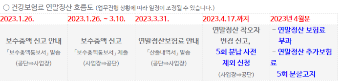 전년도 보수총액을 기준으로 우선 부과한 2022년도 보험료와 2022년도 실제로 받은 보수총액으로 산정한 확정보험료의 차액을 2023년 4월분 보험료에 추가부과 또는 반환하는 절차입니다.