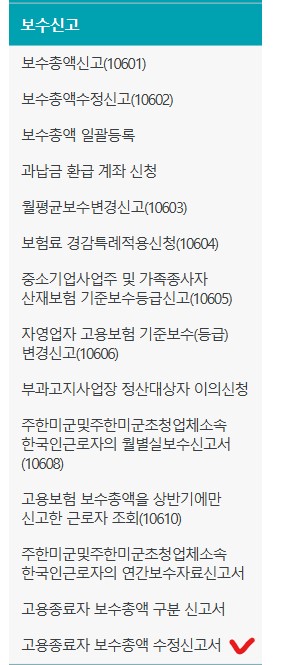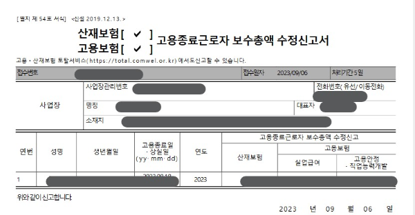근로복지공단-고용종료자 보수총액 수정신고서식으로 신고합니다.