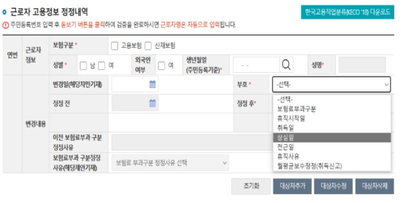*보수 외에 상실일등 변경은-자격관리-피보험자・고용정보 내역 정정 신청서식에서 가능합니다.