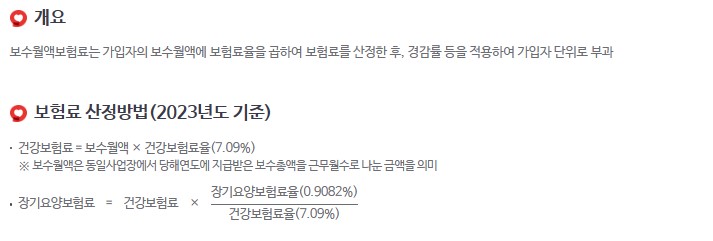 2023년도 건강보험료 요율은 직원부담분 3.545% 요양보험료 요율은 직원부담분 건강보험료의 12.81%로 확인되는데요.